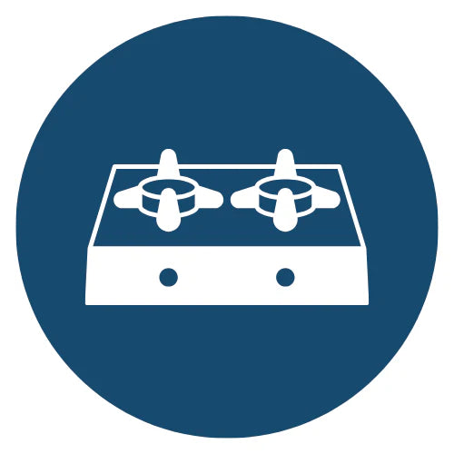 It designed for versatile use in RVs, camping, and homes. Its universal bottom is compatible with gas, electric, halogen, induction, and ceramic stovetops, making it suitable for a wide range of cooking environments.